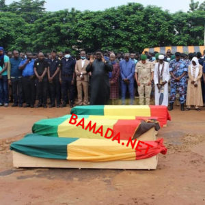 Le Ministre de la Sécurité et de la Protection Civile, le Général de Brigade Daoud Aly MOUHAMEDINE, a présidé, le jeudi 11 août 2022, à l’Ecole Nationale de Police (ENP), la cérémonie funèbre des cinq policiers tombés à Koutiala. Ces policiers ont trouvé la mort suite à l’attaque lâche et barbare perpétrée par les ennemis de la paix et de l’ordre public, entre Koutiala et Sona, le 7 août 2022 vers 10 heures. Ladite cérémonie a enregistré la présence du Directeur Général de la Police Nationale, l’Inspecteur Général Soulaïmane TRAORE, des amis, parents et collaborateurs.