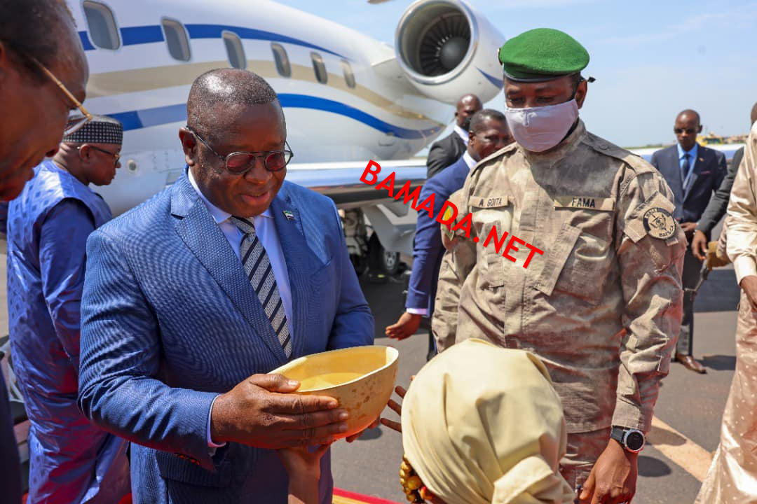 Le Président de la Transition, SE le Colonel Assimi GOÏTA, Chef de l’État, a accueilli, ce 30 septembre 2022, le Président de la République de Sierra Leone, à sa descente d’avion, à l’aéroport international Modibo KEÏTA de Bamako-senou.
