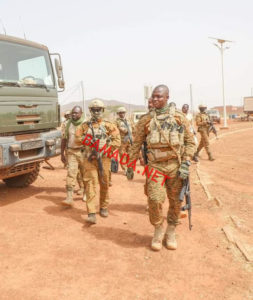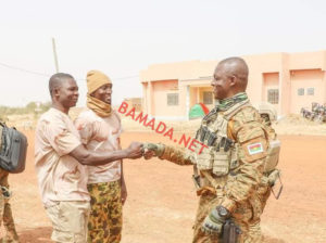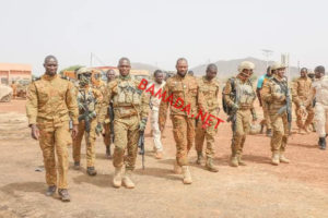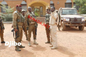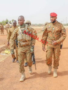 Pour sa première sortie officielle à l’intérieur du pays, le président Ibrahim Traoré a choisi Djibo, ville sous blocus des groupes jihadistes. En tenue de guerre, le capitaine Ibrahim Traoré s’est rendu, samedi 05 novembre 2022, sur la ligne de front pour « porter du réconfort » aux soldats basés à Djibo (nord), qui ont subi une attaque jihadiste le 24 octobre dernier, rapporte la Présidence du Faso, ce lundi en début de soirée. L’attaque revendiquée par le Groupe de soutien à l’islam et aux musulmans (GSIM) avait coûté la vie à 10 soldats, selon l’armée qui avait affirmé avoir tué au moins 18 terroristes. « Félicitations pour le travail abattu, beaucoup de courage pour la suite », a dit le capitaine Traoré au personnel du 14e Régiment interarmes de Djibo avec qui il a échangé sur les conditions de travail avant de leur demander de garder le cap. « Partout où le devoir va nous appeler, partout où les populations auront besoin de nous, nous irons. Nous allons reconquérir tout le territoire », a soutenu le Capitaine Ibrahim Traoré, kalachnikov en bandoulière. Le président Traoré a promis que les soldats déployés depuis « plus de 2 ans » dans cette ville, constamment victime d’exactions des jihadistes, seront relevés afin de leurs « permettre d’aller se ressourcer pour être plus efficaces ». Première destination officielle du président de la transition à l’intérieur du pays, Djibo est assiégé par des insurgés islamistes. Les populations ont été ravitaillées en vivres les 2 et 3 novembre dernier. Le 26 septembre, un convoi humanitaire en route pour cette ville de la région du Sahel avait été la cible d’une attaque à Gaskindé, revendiquée par le Groupe de soutien à l’islam et aux musulmans (GSIM), affilié à Al Qaida.