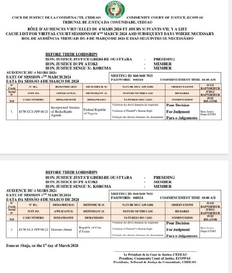 La Cour de Justice de la CEDEAO a simplement rappelé aux deux parties avoir déjà jugé de l’affaire et condamné l’Etat de Côte d’Ivoire. Et qu’elle ne devait plus rejuger l’affaire, mais attend l’exécution de sa décision d’octobre 2021 par l’Etat de Côte d’Ivoire.