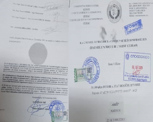 L’Etat de Côte d’Ivoire a tenté de spolier Oumar Diawara dans une affaire dite BNI Gestion, avec des décisions de ses tribunaux. Après 4 ans de bataille, l’investisseur saisit la CEDEAO. Sa juridiction annule toutes les ordonnances prises par l’Etat de Côte d’Ivoire à travers ses tribunaux, à son encontre le 22 octobre 2021. La cour de justice de la CEDEAO a été saisie le 15 avril 2021 par l’homme d’affaires. Après analyse des faits, a sans ambiguïté, elle a mis en évidence les violations des droits du plaignant.