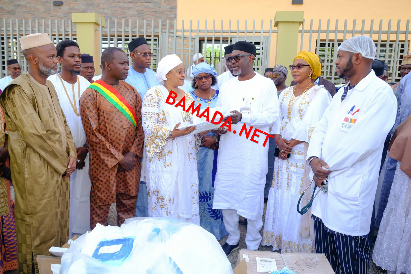 La remise symbolique des intrants de dialyse a eu lieu en présence du Conseiller spécial du Président de la Transition, de la ministre de la Santé et du Développement social, du Directeur Administratif et financier de la Présidence, des responsables du CSREF de Lafiabougou et des élus communaux.